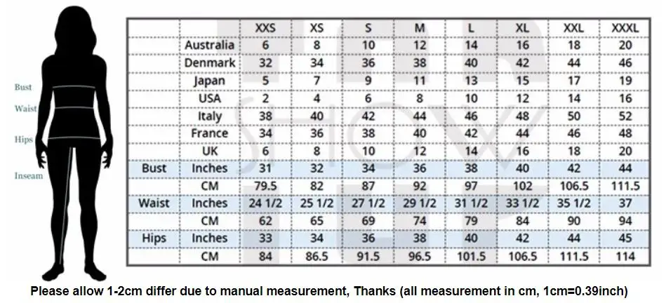 European Size:S~XXL US Size:38~44 |