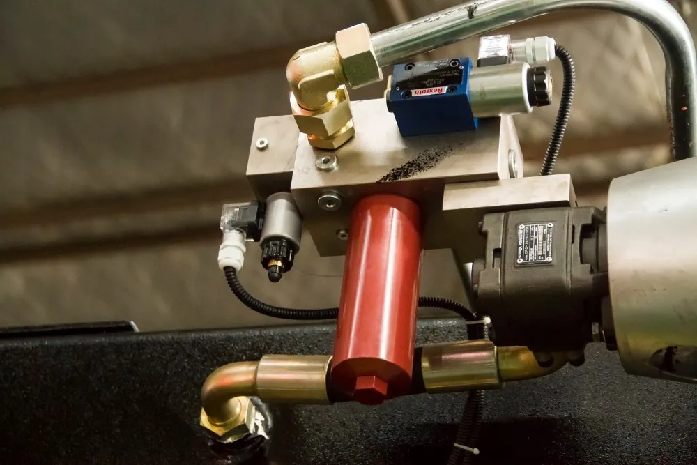 7. Hydraulic double cylinders on the drive, mechanical block, twisting axis synchronization, smooth and reliable operation, high precision.