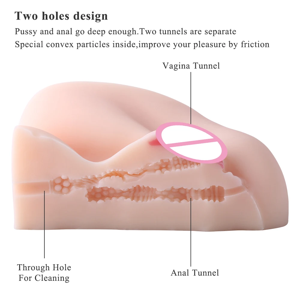 ★LIFE SIZE:The sex toy measures 8.7*7.9*4.3 inches.Pussy and anal go deep enough,two tunnels are separate