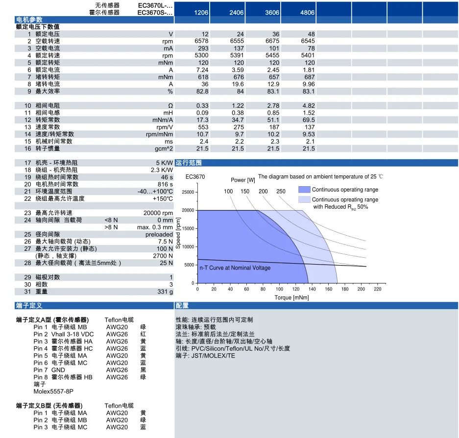3670 coreless brushless dc Motor for Medical equipment, dental equipment and various electrical equipment