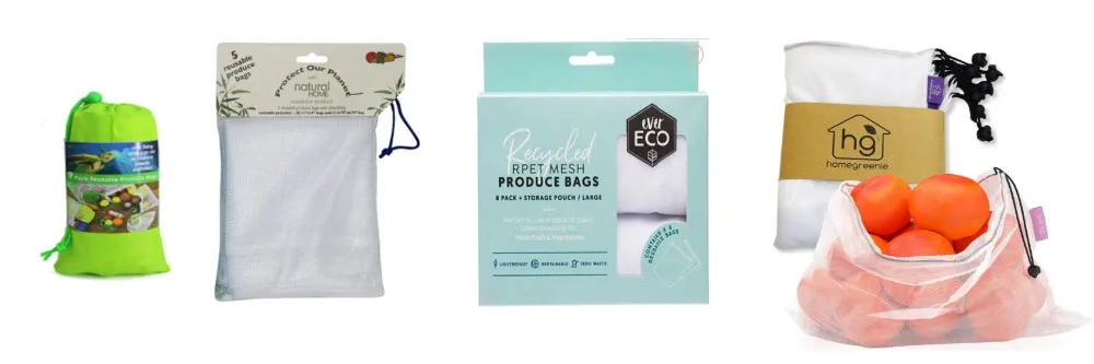 Reusable Produce Bags Mesh Polyester Vegetable Fruit Bags Storage Pouch Grocery Organizer Bag Set