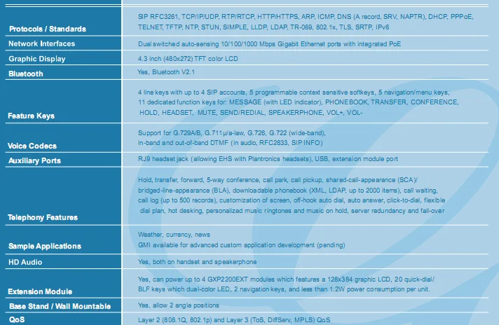Bringing quality and versatility to your desktop, the GXP2140 delivers the ideal balance of call control, sleek design and an enjoyable user experience. This device is the choice for the desktop user who requires medium-to-high call control functionality with a focus on advanced features and high-end design.