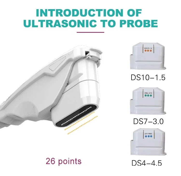 4.5mm head--- the ultrasound to penetrate the skin to a depth of 4.5mm, direct subcutaneous SMAS layer, targeted to thicker skin, such as cheeks, neck, etc.