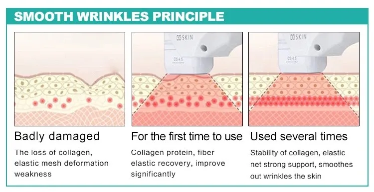 Tight smoothing skin: mechanism of thermal energy stimulates subcutaneous tissue layers of collagen contraction and hyperplasia, then it quickly fills the melting fat thickness make the skin smoothas before.
