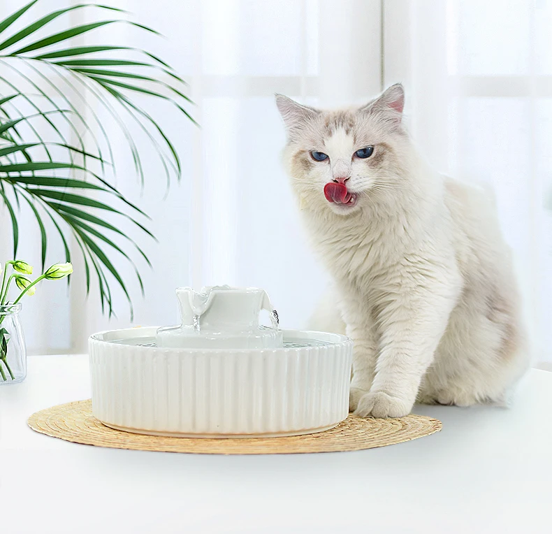 2020 Cake Shape Pet smart water dispenser Ceramic Water Bowl Pet Drinking Fountain