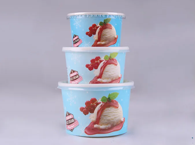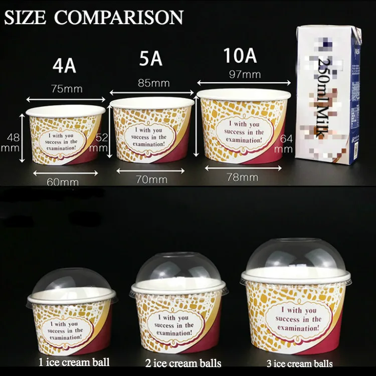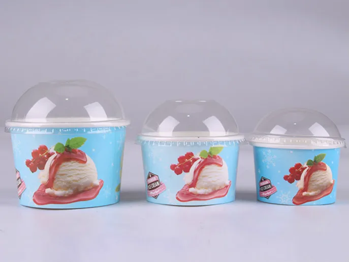 Custom LOGO Printed Single Wall Cheap Disposable Sorbet Ice Cream Yogurt Paper Cups With Dome Flat Lid | ||||||||
