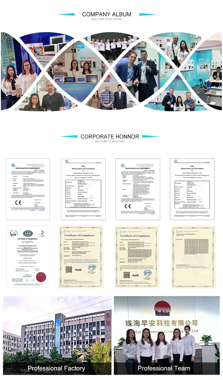 System: | Support 6 indoor monitor + 2 call panel + 2 Camera |