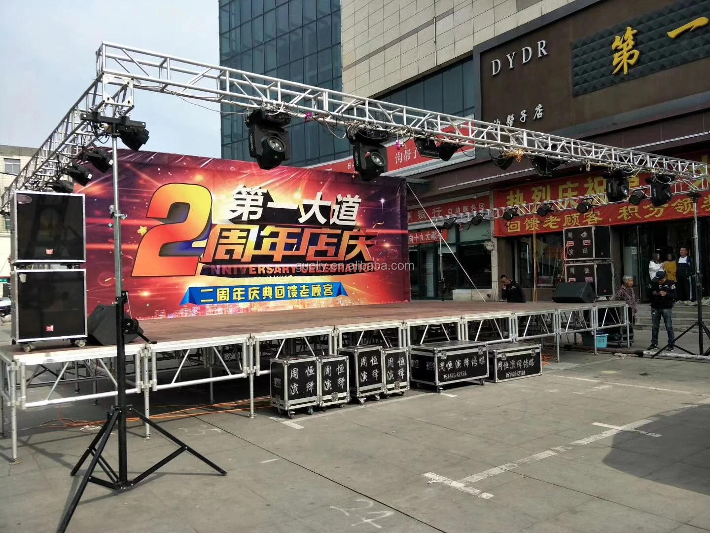 Connecting way | on the 0.5m top bar of tower, connecting one truss for hanging lightings |