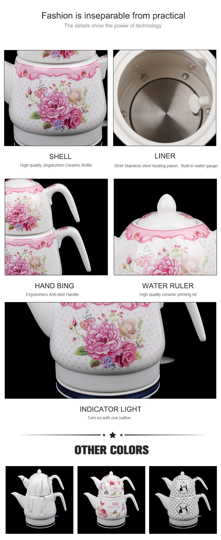 ceramic electric kettle APO anti dry burning electric kettle ceramic Double teapot