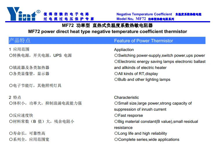 MF72 power direct heat type negative temperature coefficient thermistor