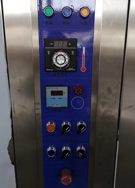The 32 trays hot-air rotary oven have 3 types :electric oven, diesel oil oven and gas oven. Trolley is hanged at top or rotated at bottom. It adopts blast force heated air circulation, this can enhance the efficiency of the thermal transmission, reduce the heating time and save energe. It can be used to bake all kinds of bread(toast bread, French bread, hamburger), cakes and moon cakes, biscuits, poultry and other meat products.