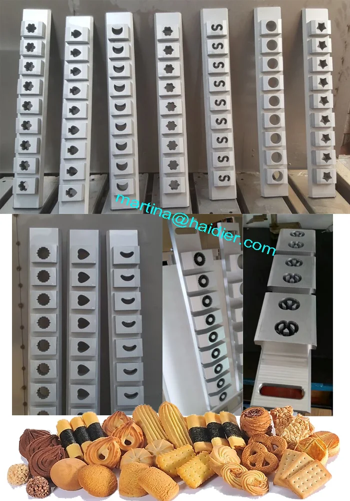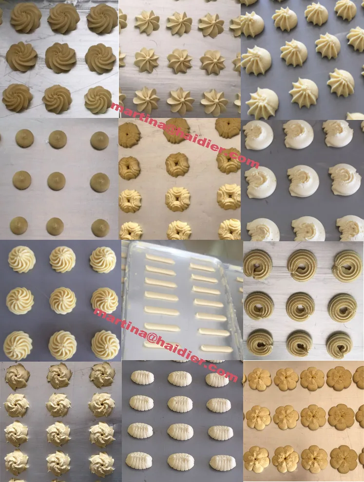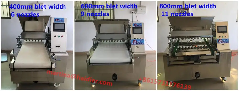The PLC control cookie machine is an new kind of cookie shaping machine, which are automatically controlled. you can set the cookie forming ways(depositing or wire cut or cupcake filling),working speed,space between cookie ,etc by touch screen.we have dozens of nozzle type for choice,or we can customize the special nozzles as your requirements.This machine high quality with SERVO motor.