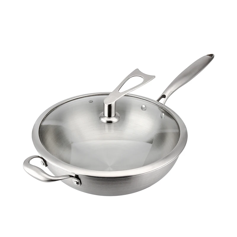 Product Name | Kitchen Cooking 30/32/34Cm Stainless Steel Wok With Cover Skillet Frying Pan Wok Pan |