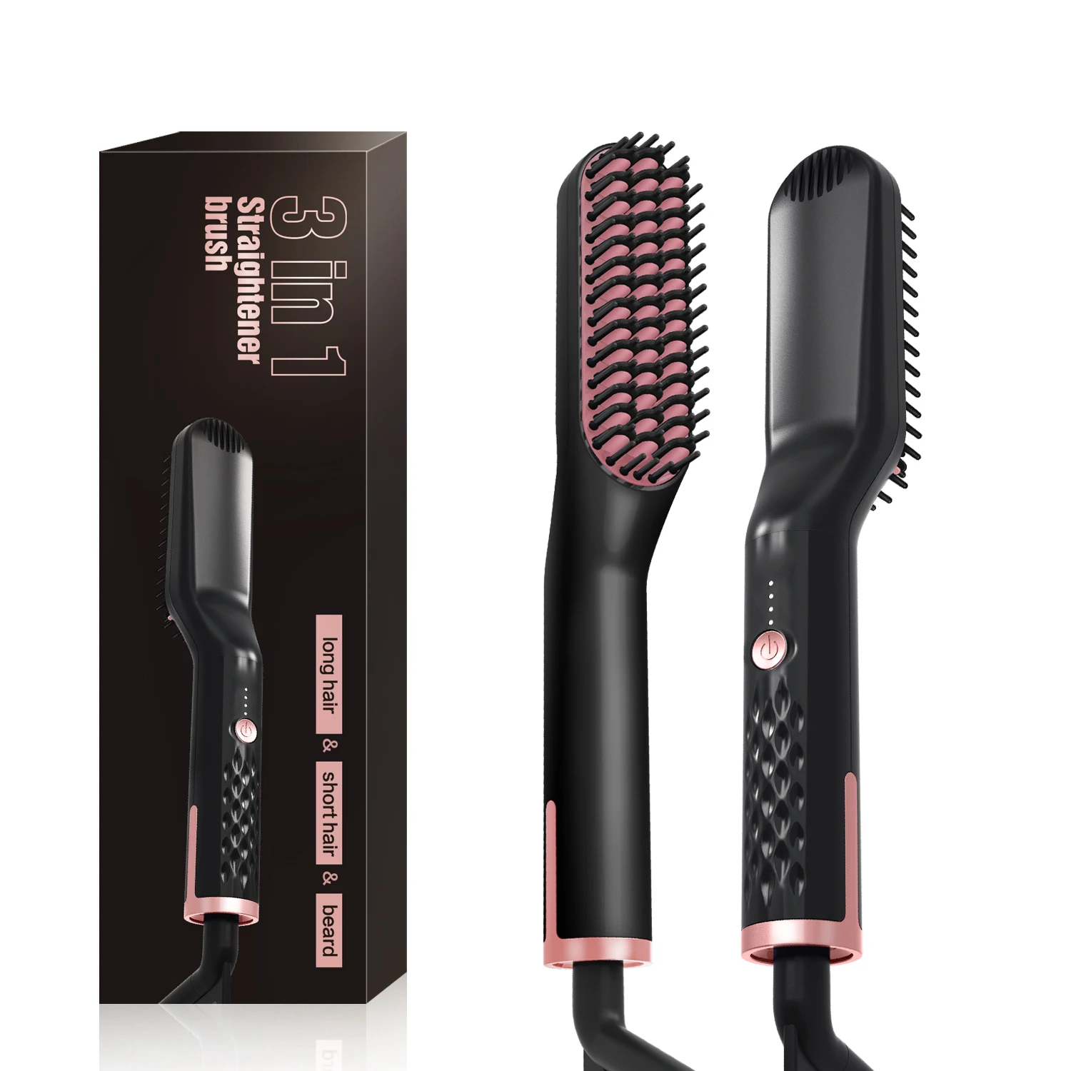 Volumize hair, flatten side hair, straighten curly hair, combines heating barrels and comb teeth for hair smoothing, straightening, curling and creating beautiful volumes.