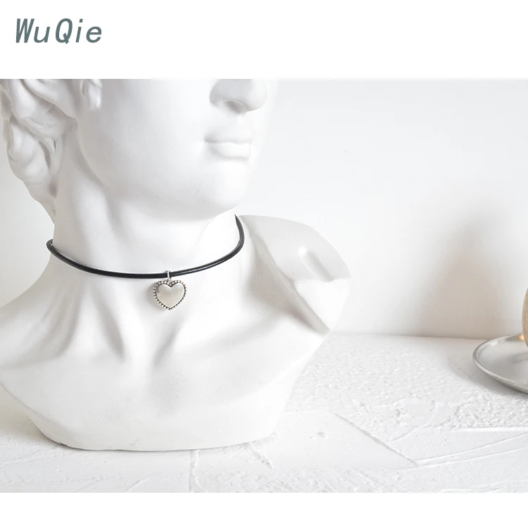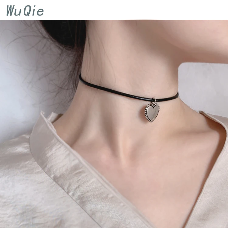 Product Name | Leather Choker Necklace Heart Shaped Silver Jewelry Pendant Choker for Women |
