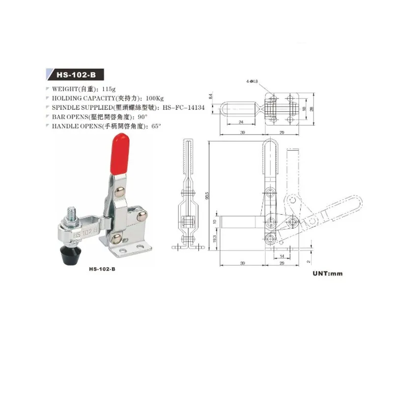 Product Name | 2019 Vertical standard toggle clamp HS-102-B holding capacity 100Kg | ||