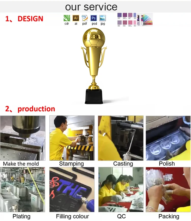 1.Factory direct work:We produce lapel pins,coins,medals,keychains,trophy cups,etc in our own factory;as well as lanyards,wristbands,sport t-shirts,etc.