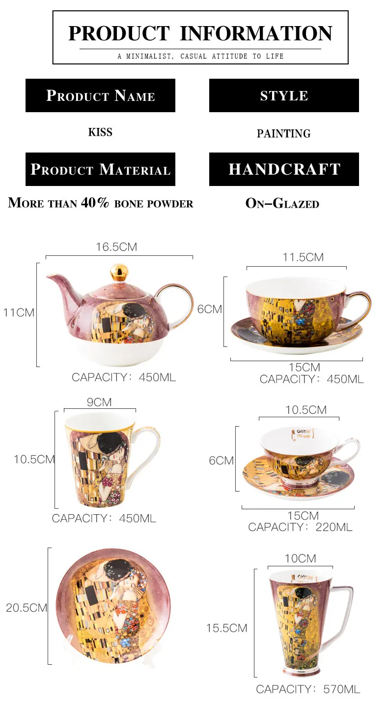 Content | 1 cup 1 saucer,1 mug, 1 high V mug, 1 plate, 1 tea pot set / set |
