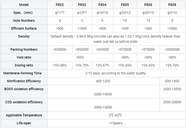 High quality 100% virgin HDPE, which can be soaking in wastewater for a long time and good quality material will not degrade and will not be toxic to microorganisms.