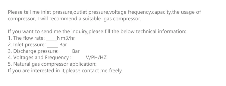 Biogas compressor product specification