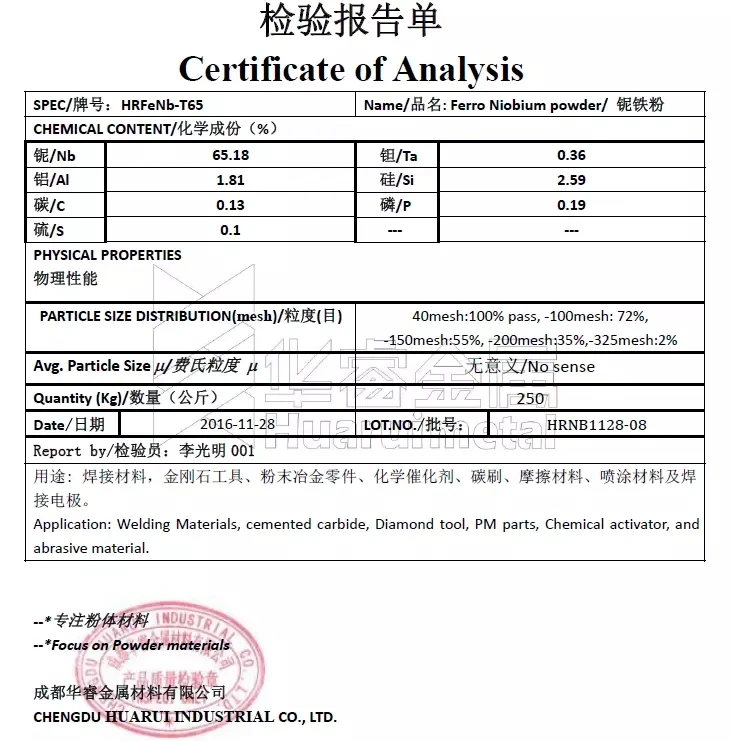 FeNb50-A | 50~60 | 0.2 | 2 | 1 | 0.03 | 0.03 | 0.04 | 0.1 |