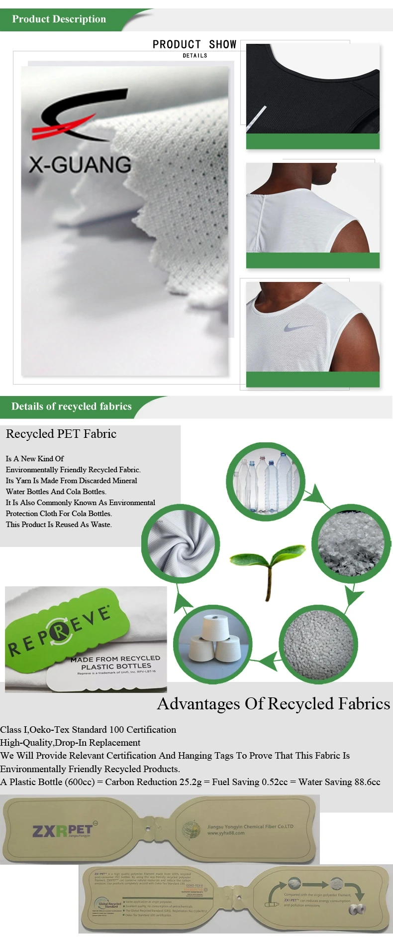 | Product Name | 100 Recycled Standard Polyester Rpet Fabric For Sportswear Yoga Legging Tracksuit |
