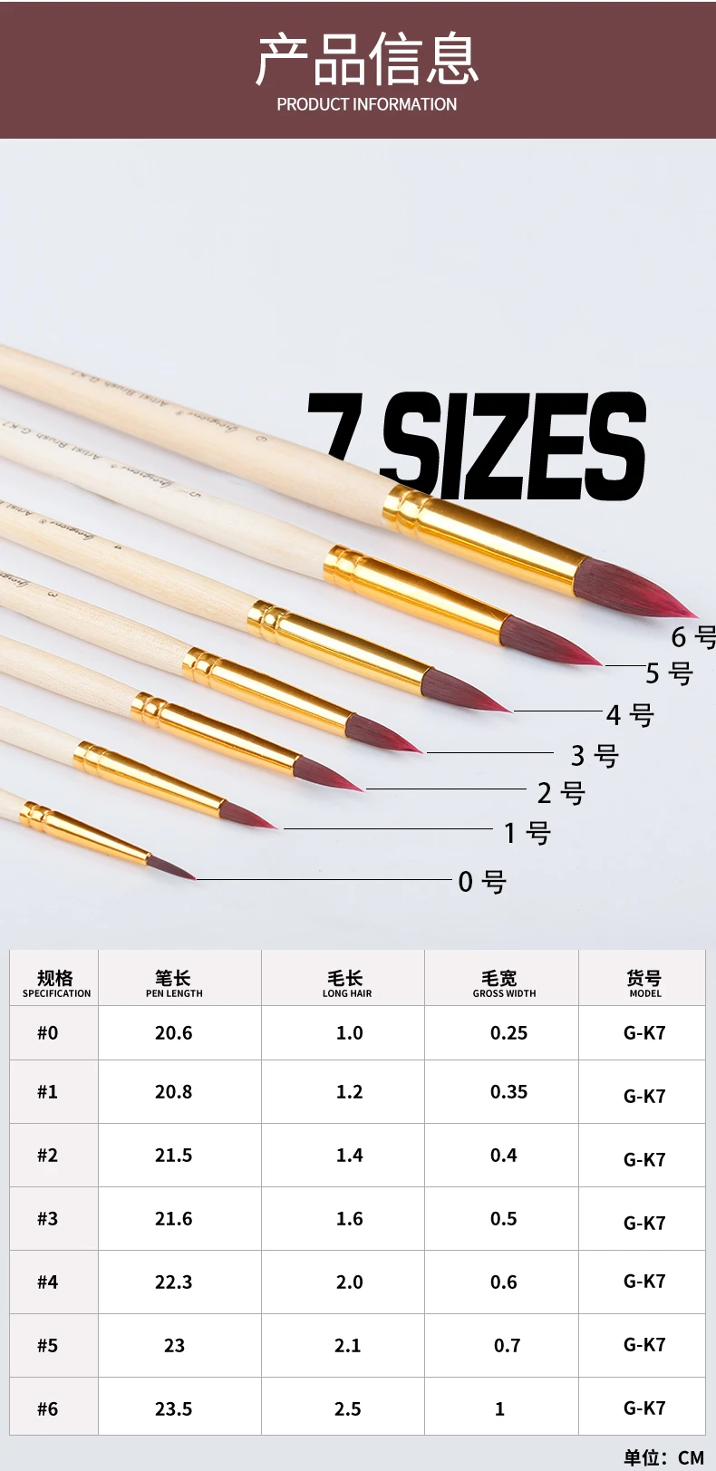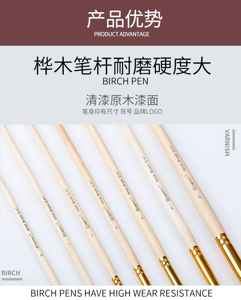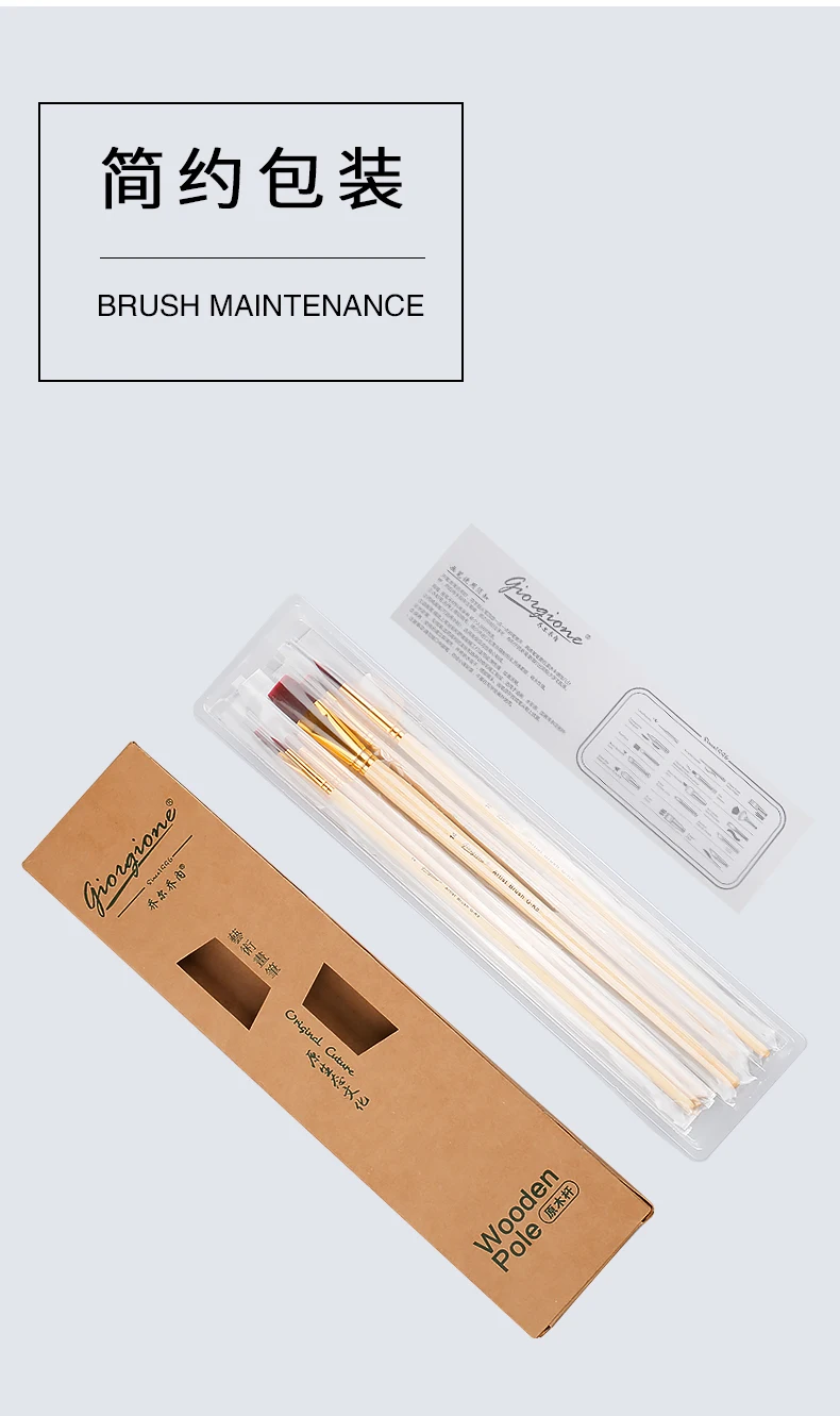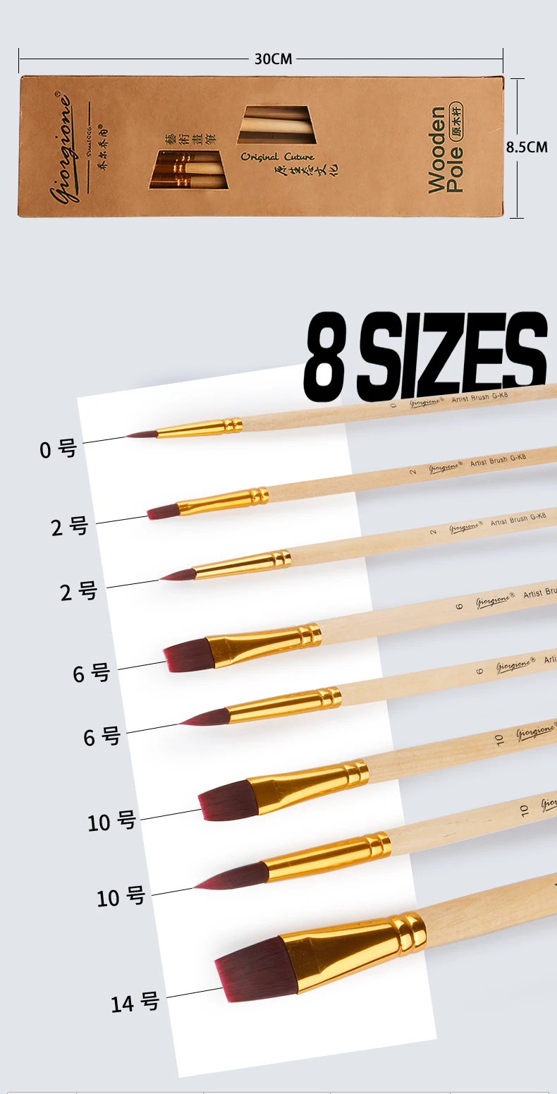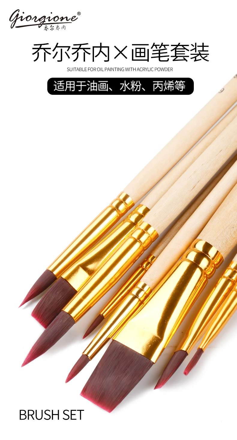 High Quality Giorgione 7 Brushes Set with Pure Colo Wood Handle Red Wine Nylon Brush | ||||||