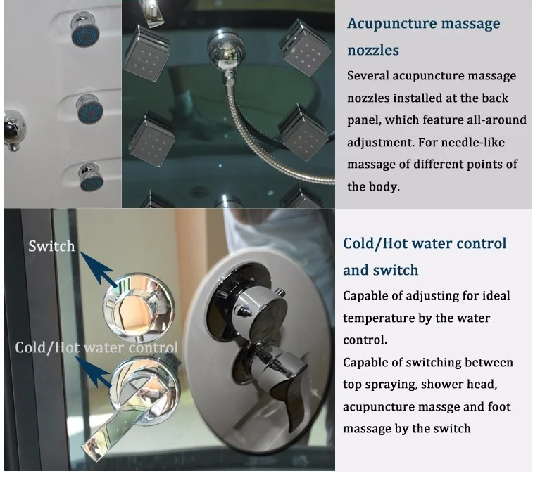 A: Our company is focus on producing the steam rooms for 12 years and has a lots of certificates .