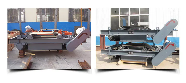 The RCYD type permanent-magnet self-unloading iron remover is equivalent to that of the RCYC series, and is applicable to the iron removal of the conveying belt of each industry. Continuous absorption of the iron can be achieved. The belt has automatic deviation-correcting function, reliable operation and simple maintenance. The internal magnetic circuit of the invention adopts a perfect magnetic pole structure, and ensures that the whole machine has no fault and long-term operation in a severe environment. It has explosion-proof and armored type.
