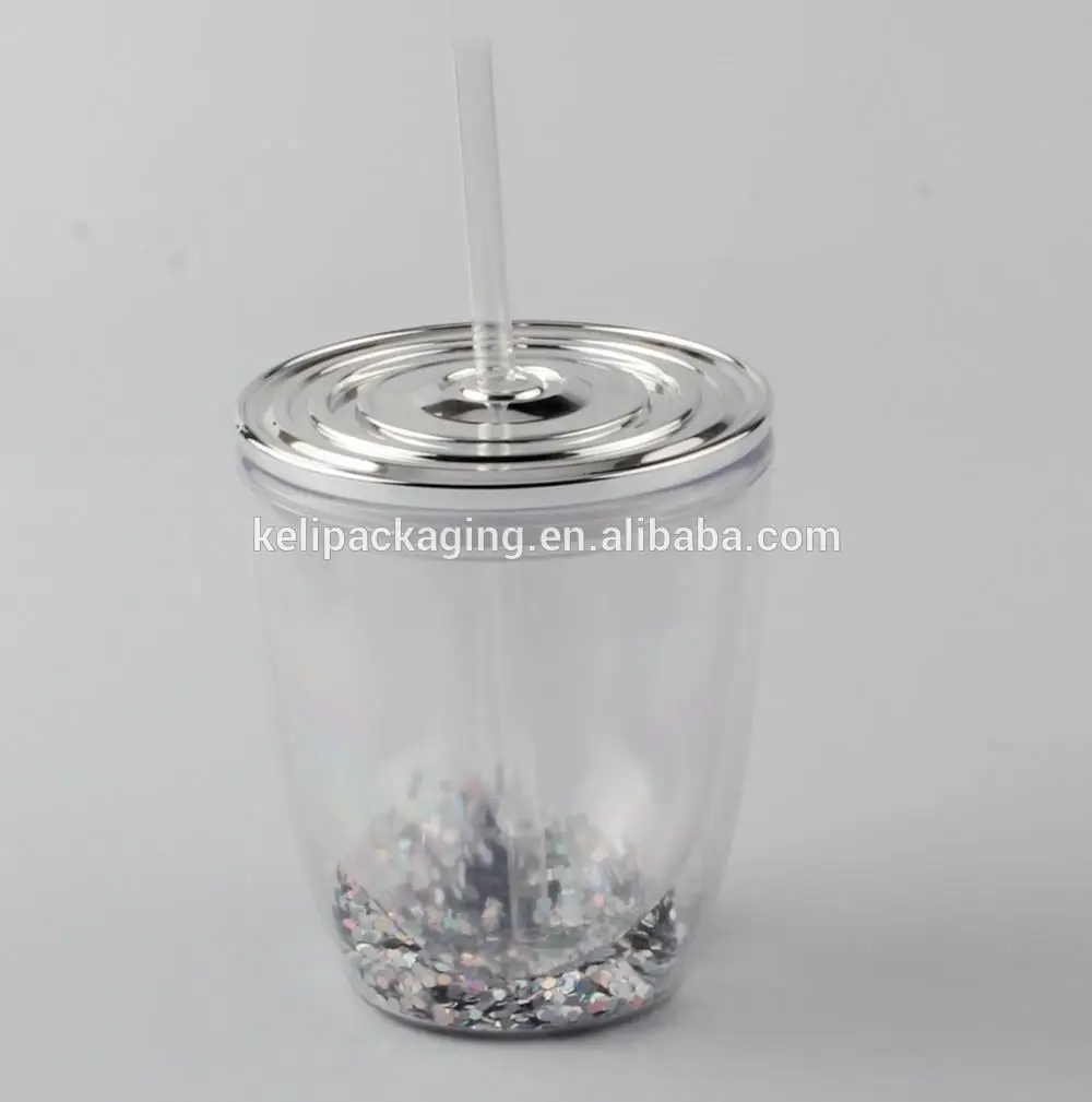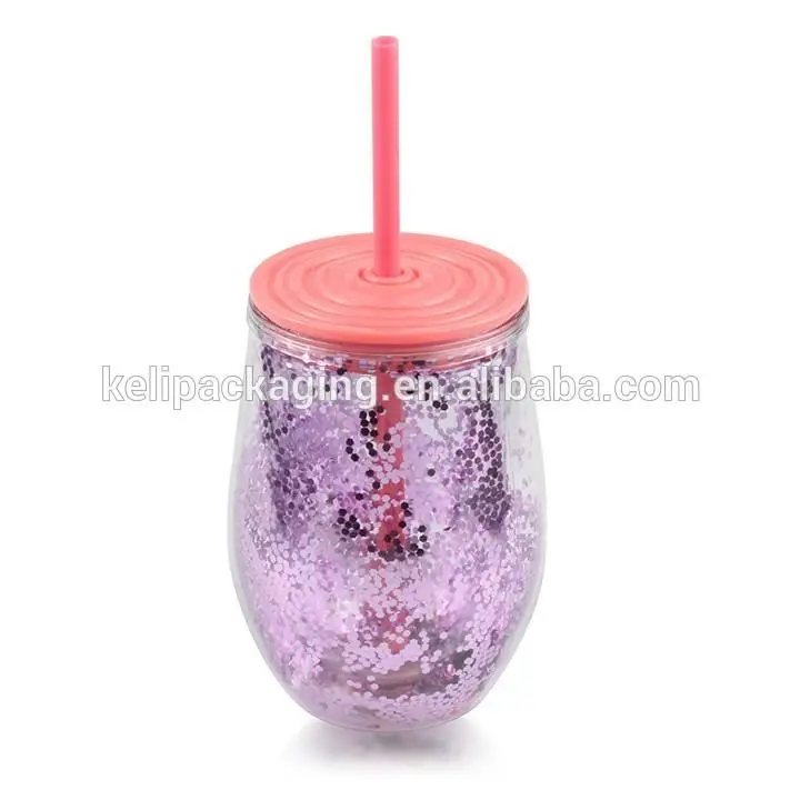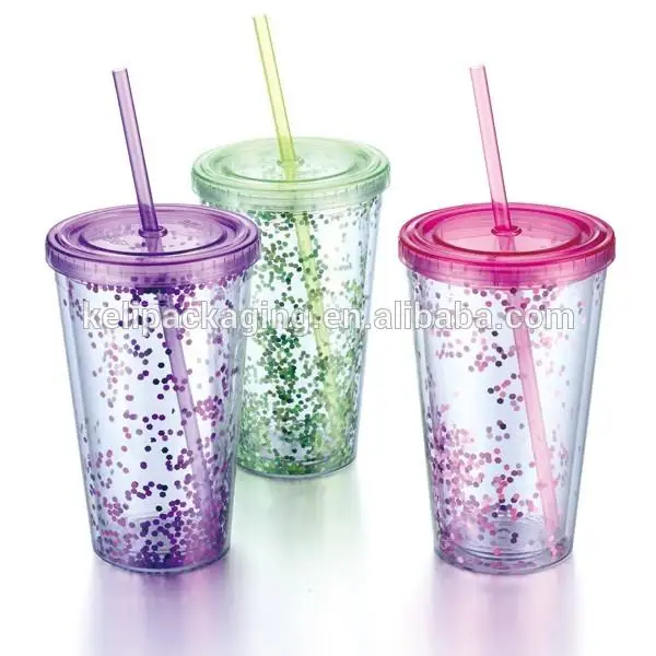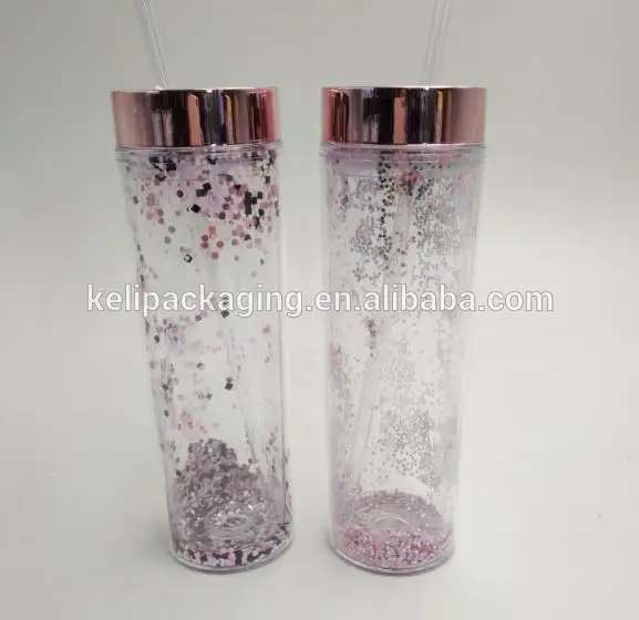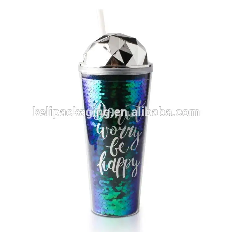 This 16 oz Sequins Double Wall Plastic Tumbler With Lid For Promotion has Sequins and straw lid.