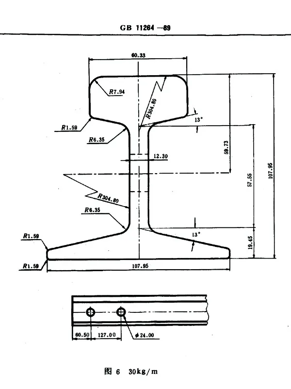 Light rail | Height (mm) | Bottom width (mm) | Head width (mm) | Middle thickness (mm) | Length (m) | Weight (kg/m) | Standard |