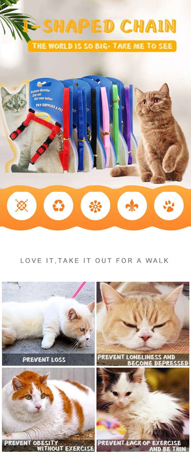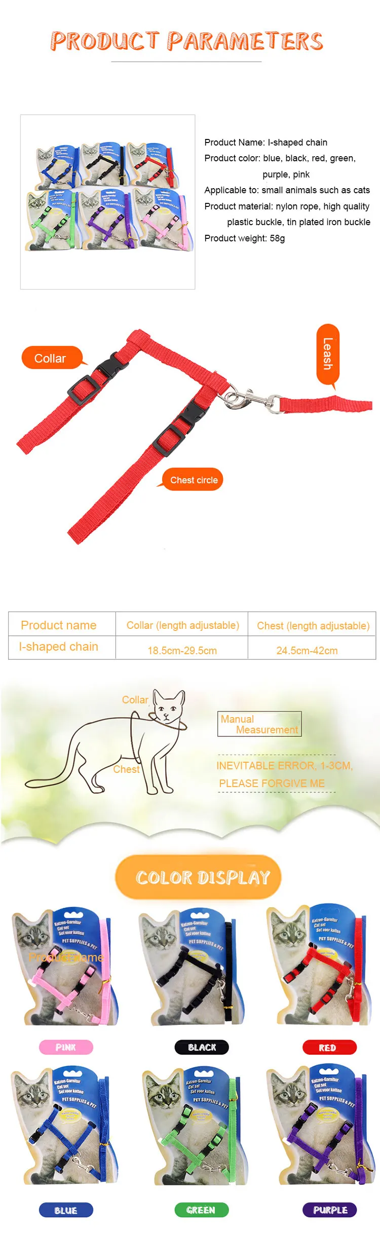 Product Name | Cat Harness and Leash Adjustable Nylon Halter Harness Kitten Nylon Strap Belt Safety Rope Leads |