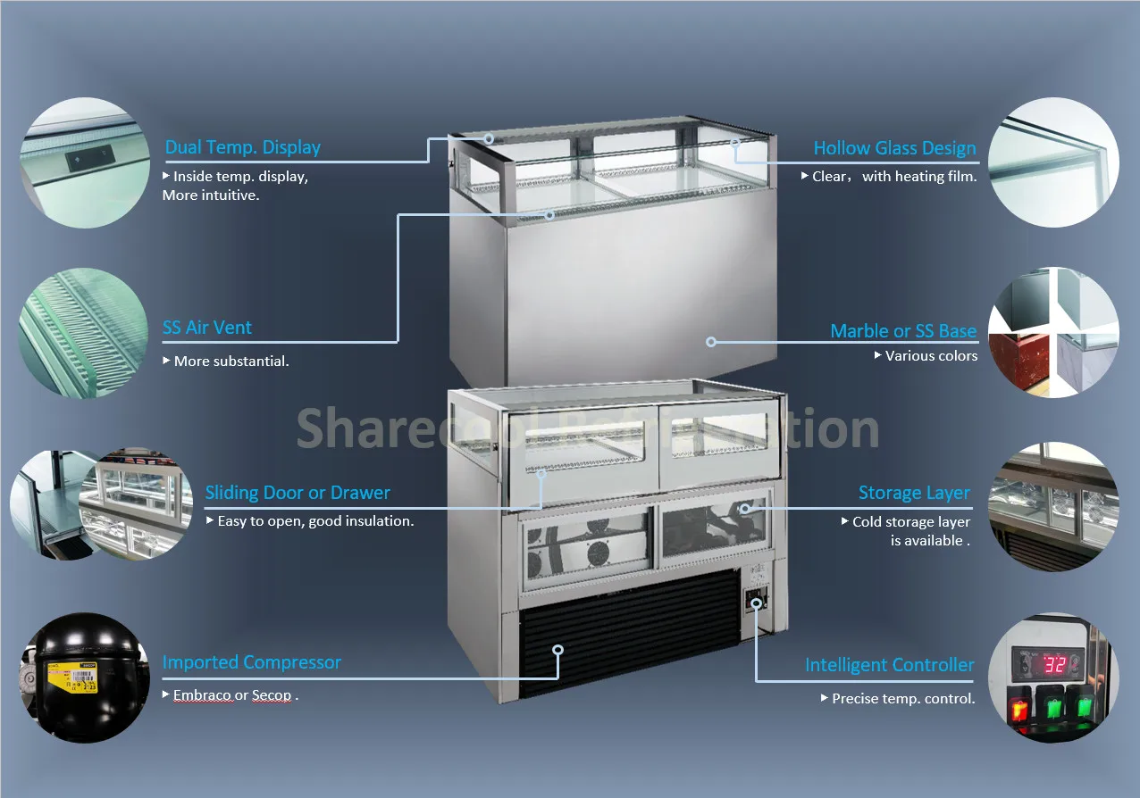 Sharecool Refrigeration was established in 2007. Through years of hard-working and efforts, We have now developed as a professional, reliable manufacturer and supplier of commercial refrigeration products such as stainless steel kitchen equipments, ice storage bin, ice cream showcase, cake showcase, etc. The customers can choose from our product list, or we can manufacture according to the customers' designs and requirements.