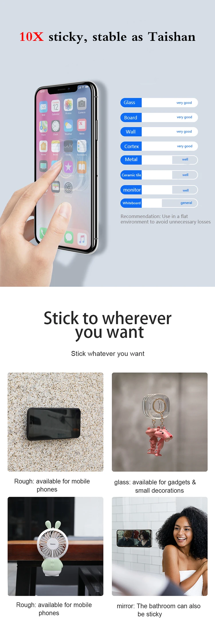 Knowledge | It can firmly stick to any smooth flat surface without leaving any traces. Keys, mobile phones can be hanged on it tightly. Features: It can be washed repeatedly, with powerful viscosity unchanged. Innovative material: washable, nontoxic, tasteless, recyclable, with environmental protection standards. Application:Stick to Glass, Whiteboards, Metal, Kitchen Cabinets, Car GPS Usage:Magic Sticky Daywons Premium Fixate Pad Sticky anti-Slip Gel Pads |