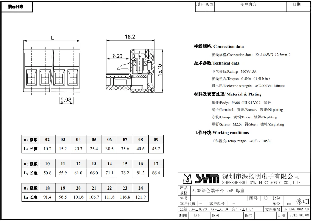 Contact: bronze, tin plated