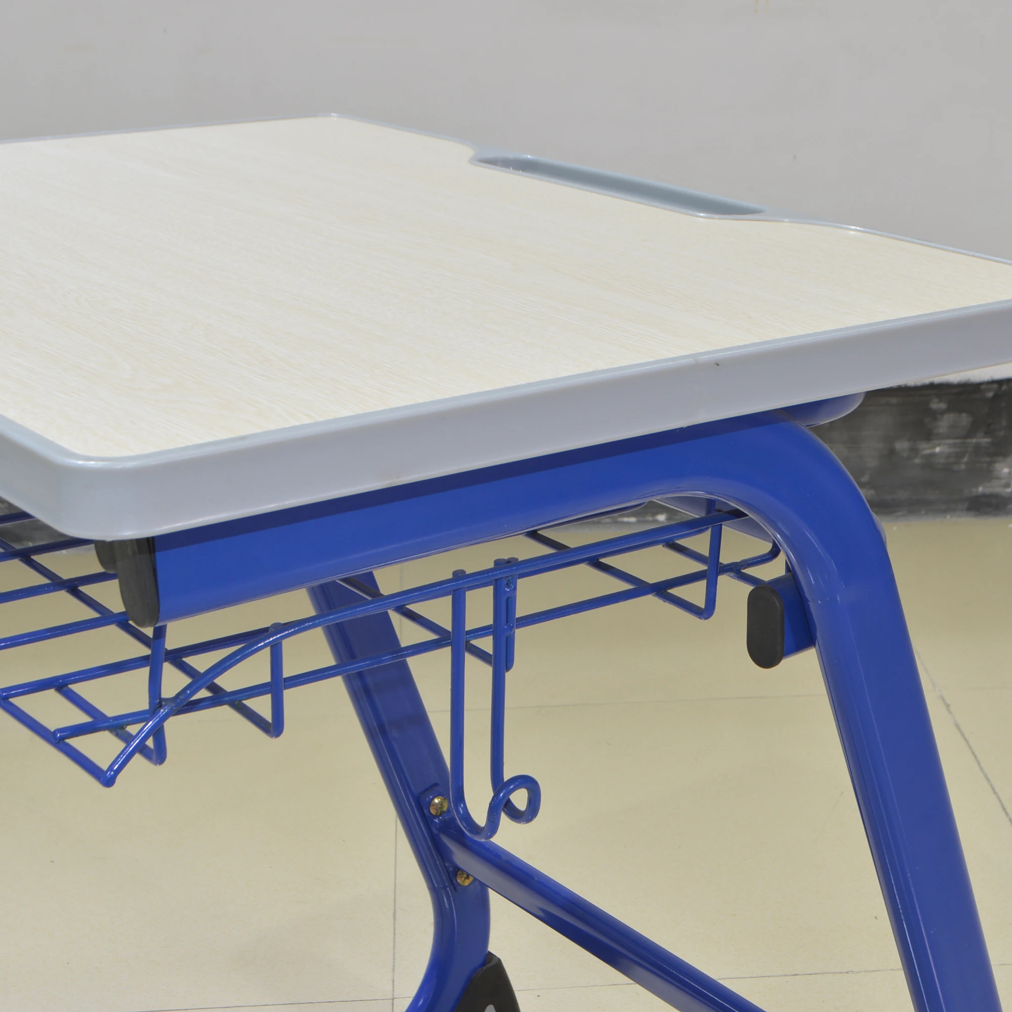 Detail | 1.Desk top:high quality 18thickness MDF with melamine board 2.Chair top:high quality PE 3.Material:high quality injection sealing side, fastness and durable, water-proofing 4.Metal:Epoxy Powder coated,antirust 5.Frame:Oval Tube 60*30*1.2mm 6.Desk Size:700L*500W*760mm Chair Size:370W*400D*440Hmm |