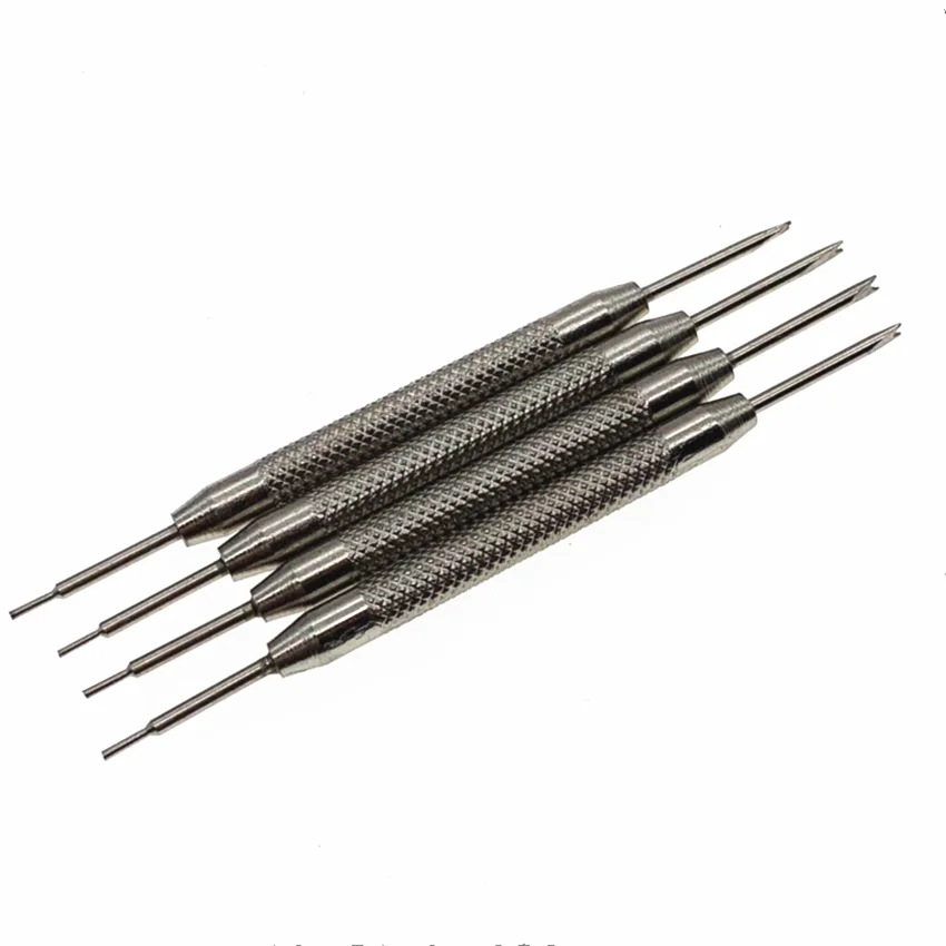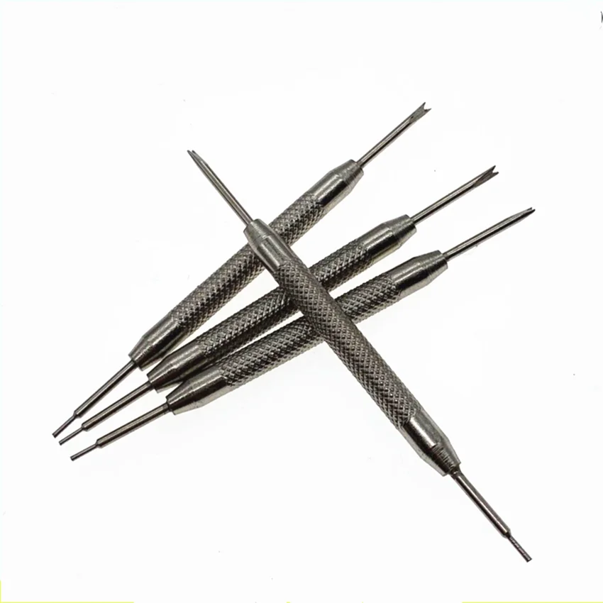 Features: For easy fitting and removing spring bars Or link pin from watch strap and band One end has large fork and the other end is reversible small fork/point Large Fork end for spring bar removal from strap and rubber Diver band Small fork end for removing lug spring bars from backside of metal band Heavy hurl handle for a sure grip.
