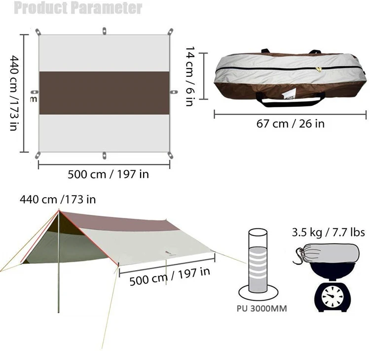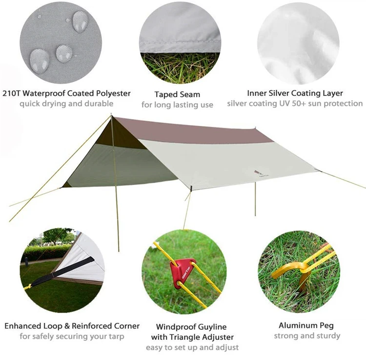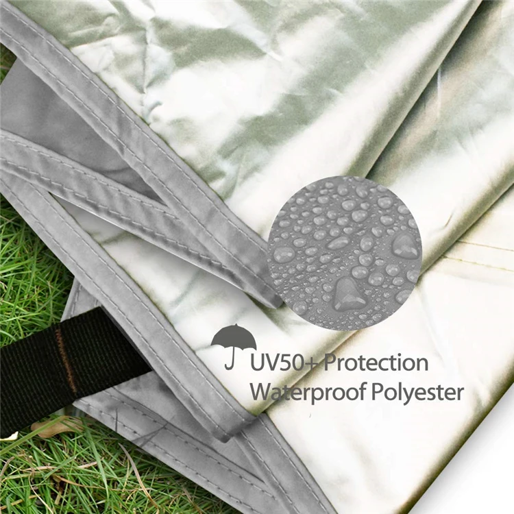 Fabric | 210T Waterproof Silver coated polyester, tape sealed at the seams (with UV50+ protection) |