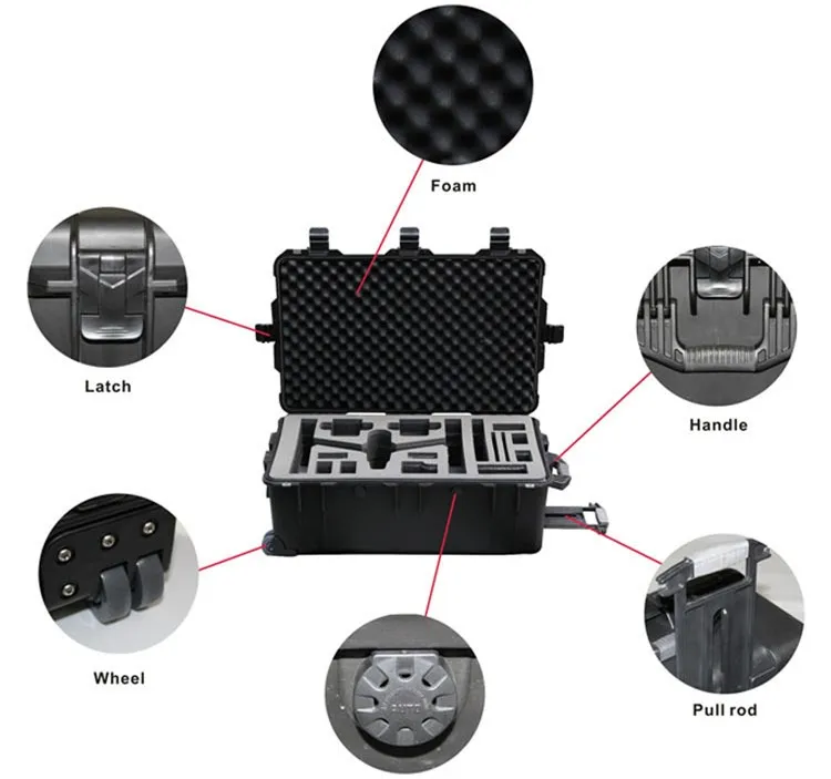Advantages | 1. Widely used for hardware tools ,medical equipments, precision instruments, laptop and etc. 2.Higher intensity, lighter weight, more durable and beautiful appearance. 3.Customized foam,logos and printing are available 4.Frosted surface 5. Suitable for tools, precision equipment |
