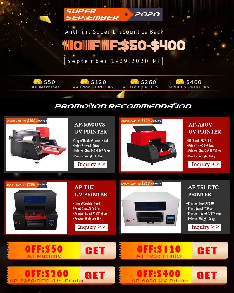 Antprint Co., limited specialized in the flatbed printer since the year of 2007 in China. Now we are doing all of the flatbed printer business, such as UV flatbed printer, eco-solvent flatbed printer, food printer and t-shirt printer. We also supply the eco-solvent ink, UV ink, textile ink and food ink, Epson printer head, Epson motherboard, clean unit, CISS ( continue ink supply system), carriage,damper etc. It is our vision to be the best small format multifunction flatbed printer supplier in China, always offer customers the best quality products, 100% good service and cooperation opportunity is our mission, embracing change and flux, taking customers as the center always become our team values!