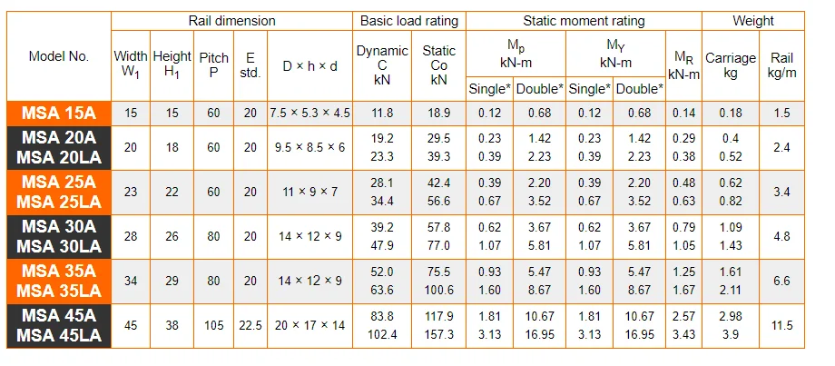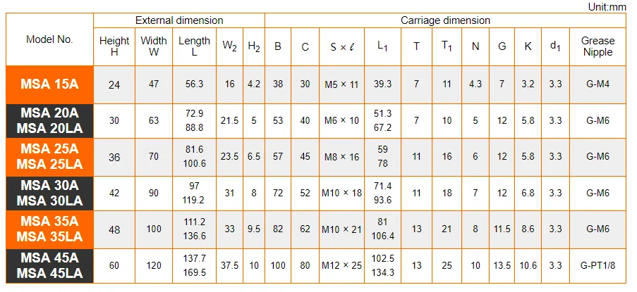 Product Name | Taiwan PMI CNC Linear Guide Rail MSA25LA ,MSA25LE |
