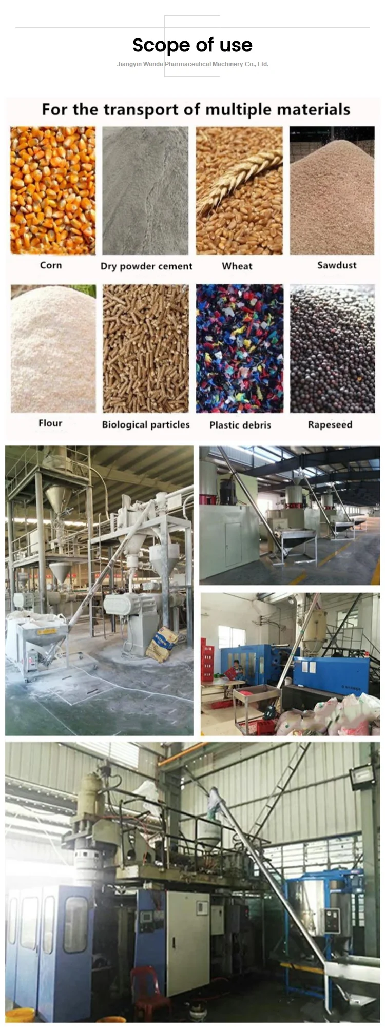 Screw feeding machine is used for feeding of chemical powder, pesticide, feed, additive, washing powder, salt, monosodium glutamate, sugar, food, flour, seeds, rice and other small particles, powder materials; mainly for dry powder, putty powder, Powdery materials such as dry mortar. The conveyor conveys material with a rigid drive shaft and spiral blades. The biggest advantage is that the raw materials are not polluted during transportation.