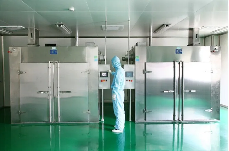 2. Uniform drying: Due to the specially designed air distributor, the hot air flow in each layer of trays is very uniform. The temperature difference inside the drying chamber is less than ±2 ℃.