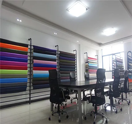 A: We mainly sell such products as PVC/PU coated oxford fabric, PVC leather, lining fabric, and polyester fabric.