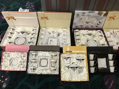 15 pcs | tea pot 1 + sugar pot 1 + milk pot 1 + 3.25''cup&saucer 6 |
