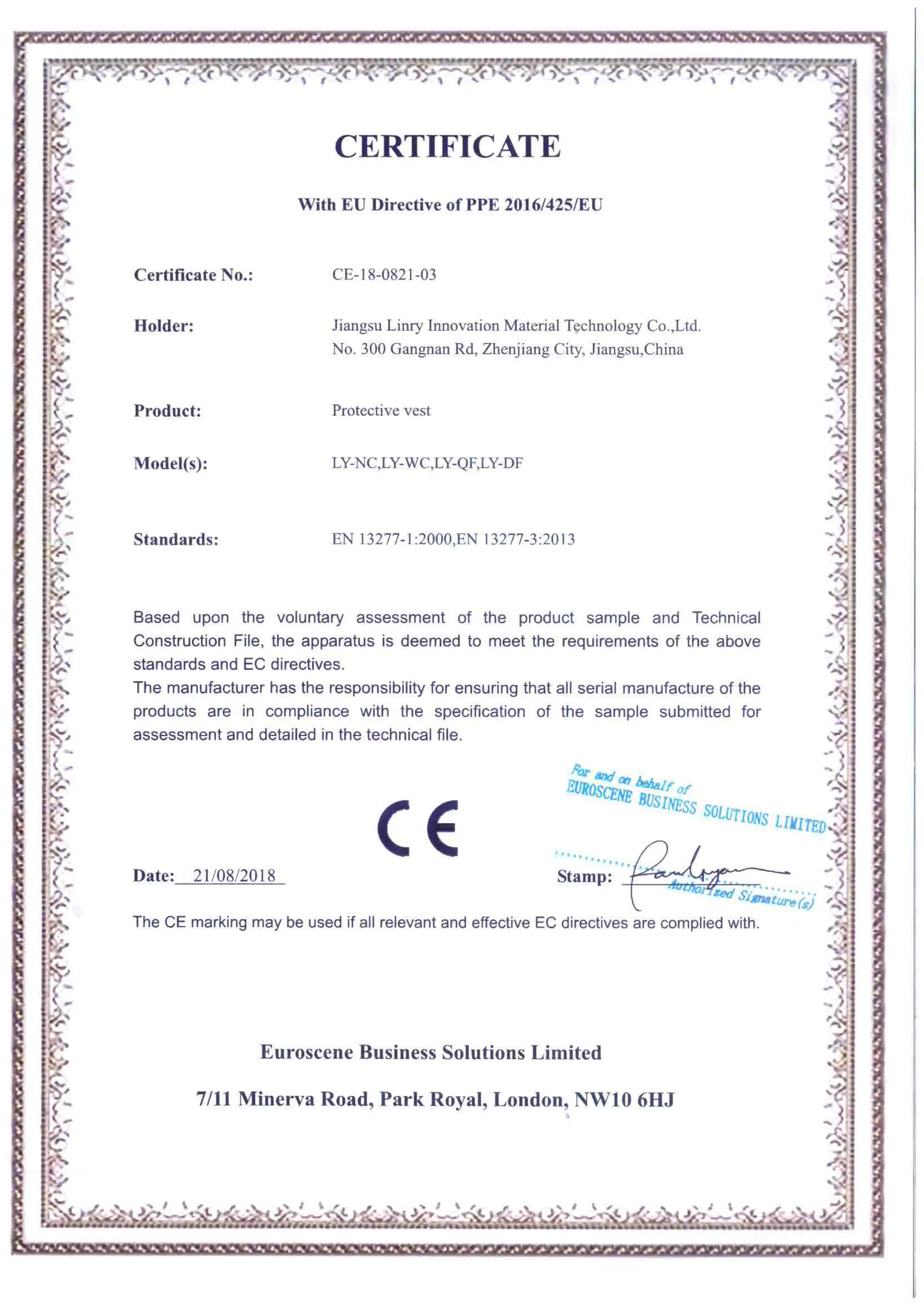 Jiangsu Linry Advance Material Technology Co.,Ltd., located in the New district National High-tech Park in Zhenjiang city Jiangsu province, China, is a national high-tech enterprise specialized in design, manufacturing, sales and service of high-strength and high modulus ultrahigh molecular weight polyethylene fiber non-woven cloth, aramid fiber non-woven cloth composite material and products (body armor, bullet-proof plate, bullet-proof helmet, stab-resistant body armor, anti-explosion blanket, anti-explosion tank and so on), special modified electric wire materials and products. It has successively won a number of honorary titles, such as National High-tech Enterprise, Jiangsu Private Technology Enterprise, Trustworthy Enterprise Quality/Service/High-integrity Enterprise, Credit Status AAA Enterprise, National Police Equipment Standardization Technical Committee Unit and soon.