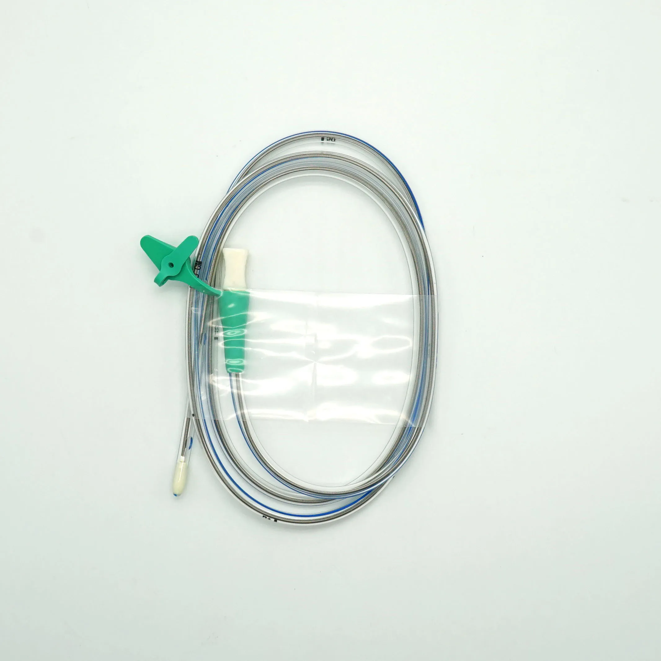 Imported medical grade polyurethane(TPU) is used to resist gastric acid corrosion. The shall and the head have X-ray with clear calibration, thus can be located accurately, the surface of the guide wire is lubricated for easier pulling-out .the three-lumen gastric tube is unique with three-cavity structure. So diffrent lumen can be used at the same time to eliminate cross infection. The three lumen bottom is in interflow for air circulation,which will effectively avoid gastric mucosal damage;used for cliinical gastrointestinal decompression,input and drainage(absorption)of liquid or liquid nutrients.