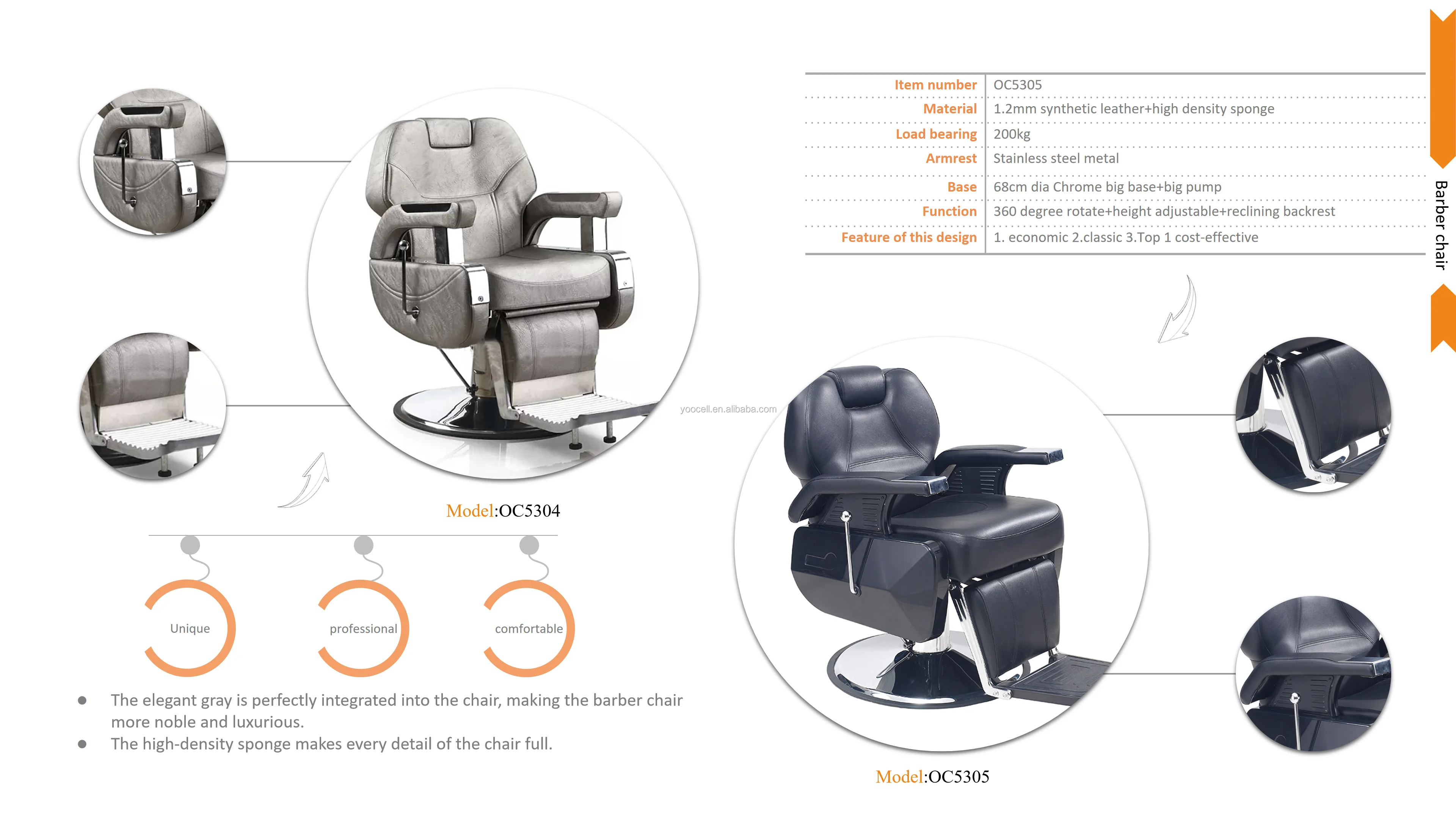 Features | 1.The pump: Hydraulic pump. It can load 200KG and you can adjust the height smoothly. 2.The sponge: High-density sponge increases the resilience of the seat. 3. The base: 68 cm dia base: support the chair firmly& increase the balance of chair 4. The leather: Using 1.2mm thickness synthetic leather to make sure the durability of the chair. | |