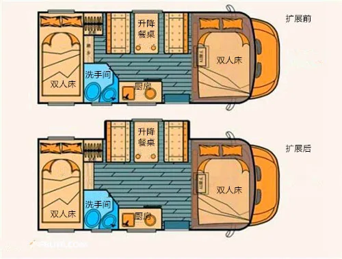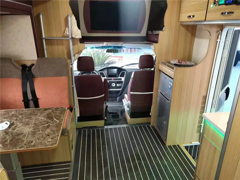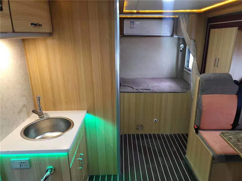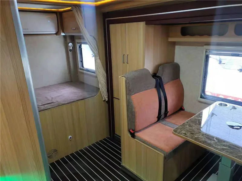 Liftable peach wood table | Double bed at the top of the cab (with ladder) | |