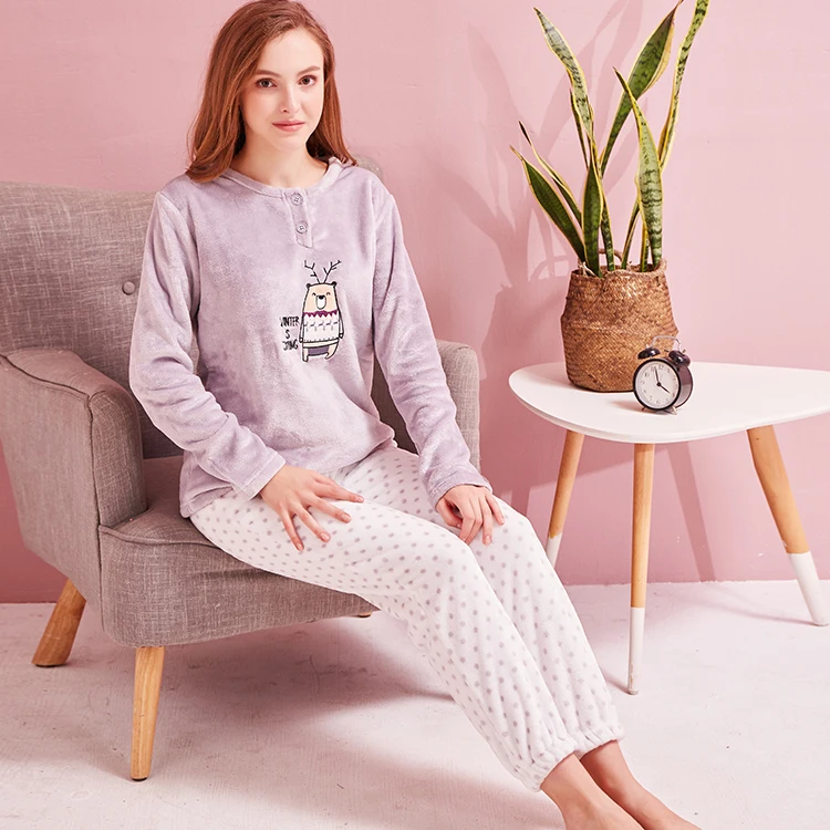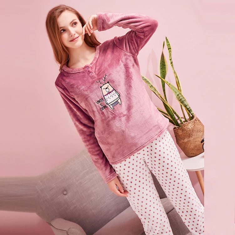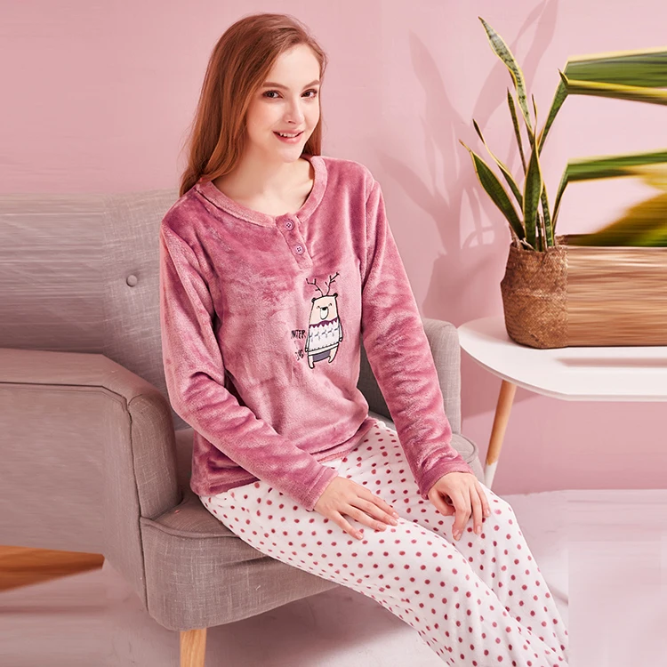 Two Pieces Set Women Best Selling Soft Flannel Animal Women Wholesale Printed Pajamas